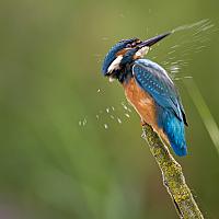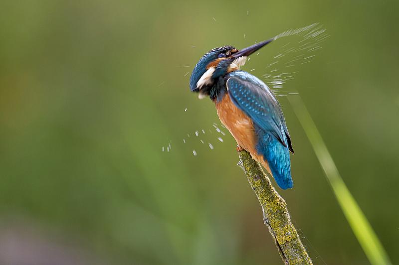 De IJsvogel neemt een verfrissend bad na zijn lunch