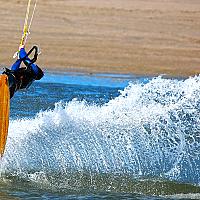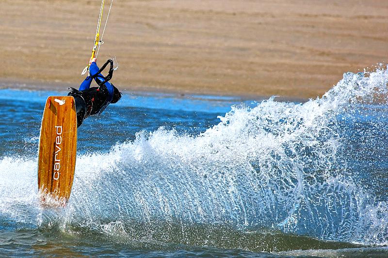 Veel wind, een goede strandlocatie i.c.m. deze kite gigant/ water kunstenaar geeft een spectaculair beeld weer.