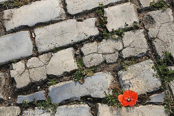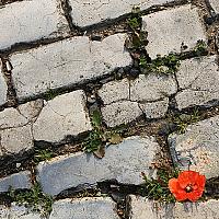 Klaproos tussen de stenen.