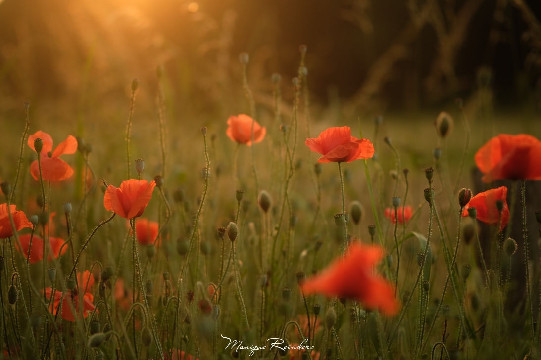 Deze klaprozen in de berm gefotografeerd in het laatste restje warme zonlicht.