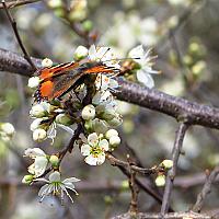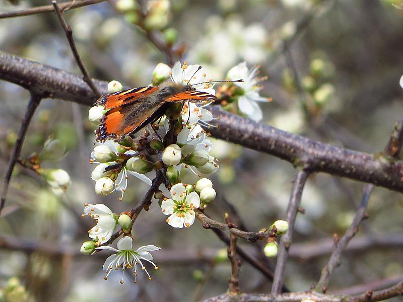 Kleine vos op eerste voorjaarsbloesem