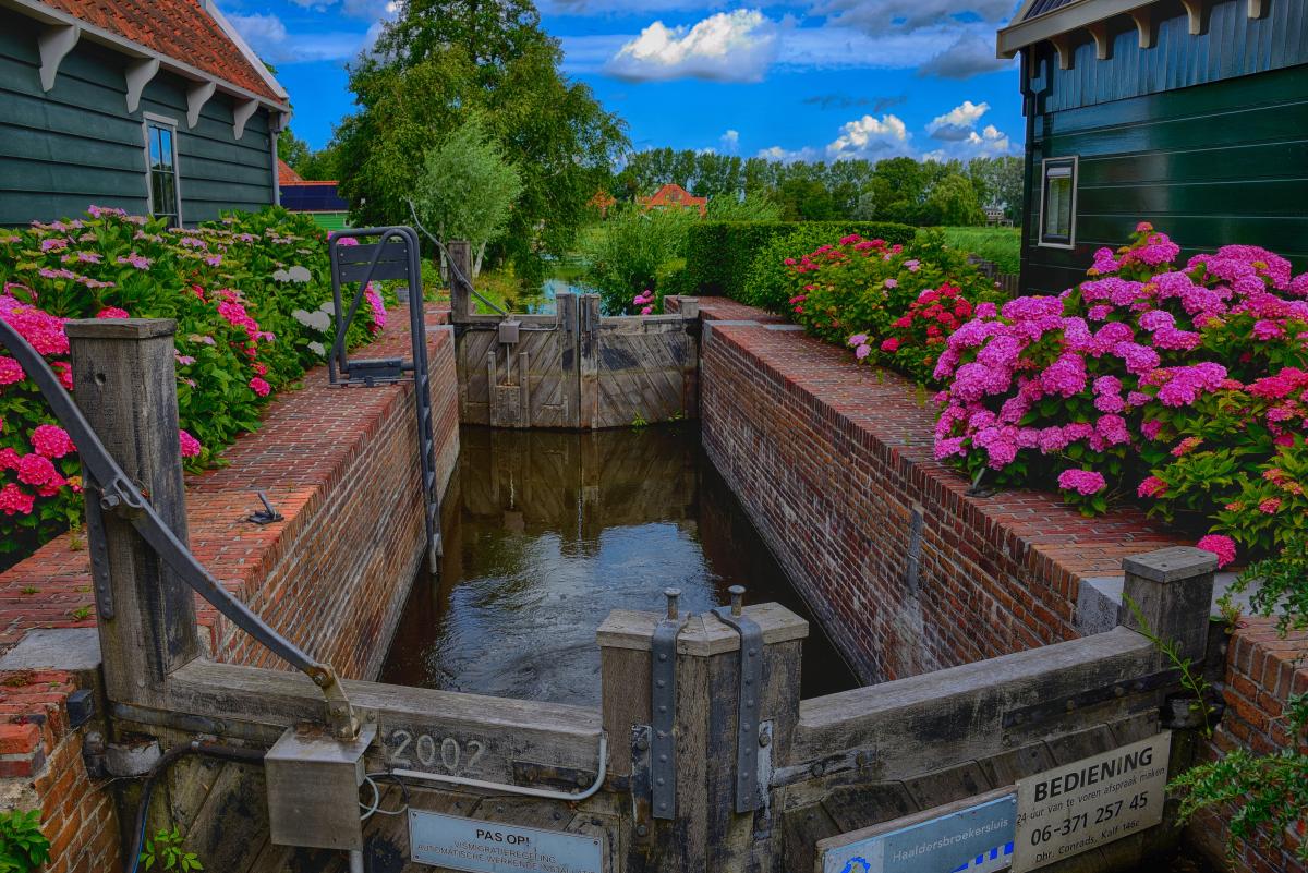 Sluisje met bloemen bij "Haaldersbroek", Zaandam.