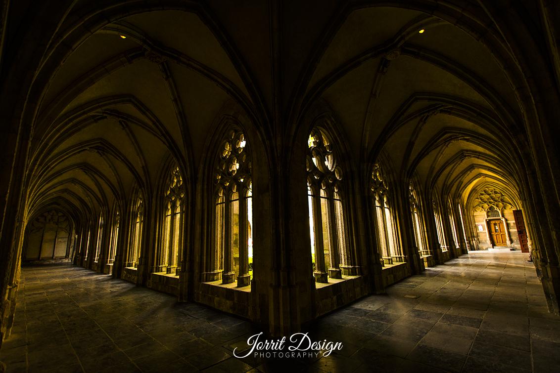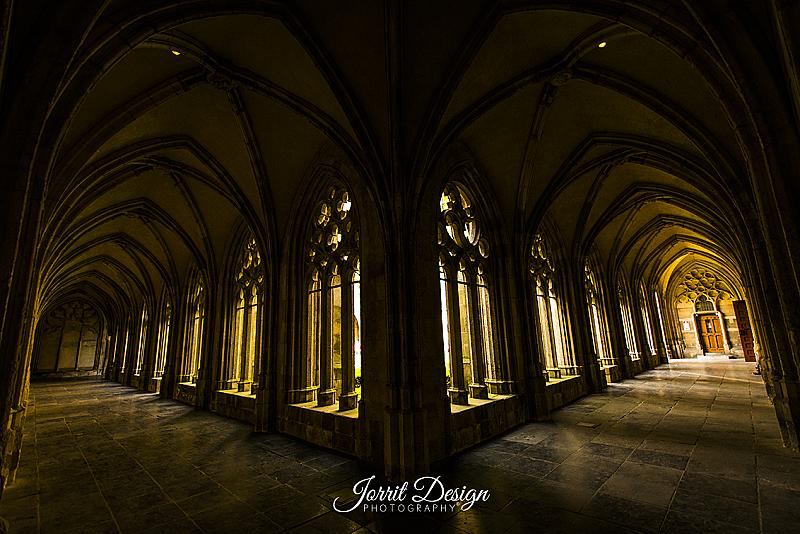 Foto van de kloostertuin achter de dom.