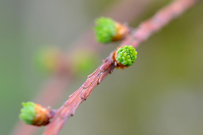 een bewolkte dag maar de verse knopjes van de lariks zijn ondanks
