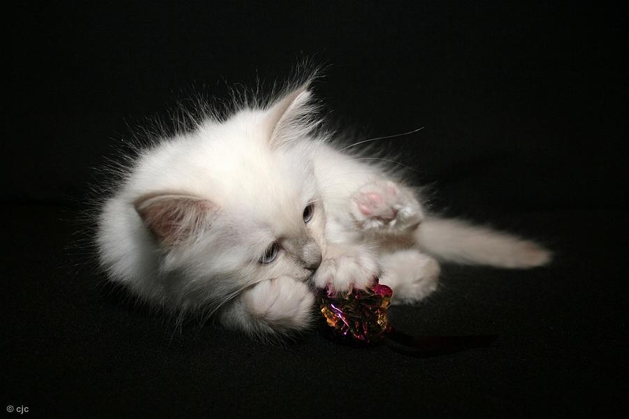 Een foto van de kleine kitten van een Heilige Birmaan.