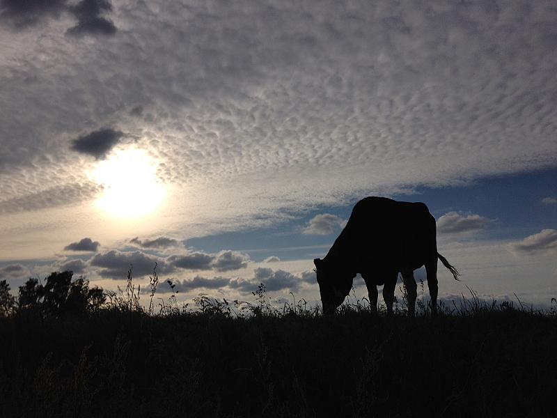 Koe in avondzon