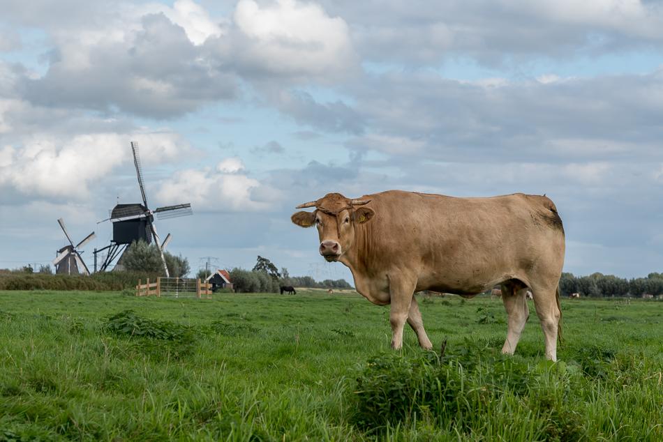 Koe op het land naast Kinderdijk