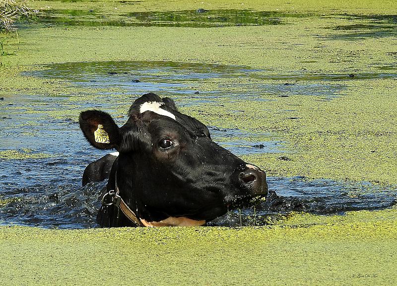 Deze 'zwemmende' koe kwam ik tegen in de polder van de Alblasserwaard.