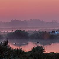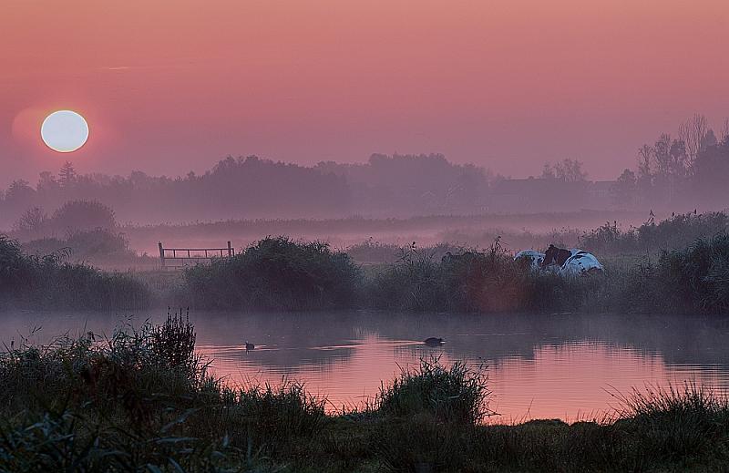 De mist viel hier reuze mee, wat damp maar wel een sfeervolle zonsopkomt waarnaar de koeien ook lijken te kijken