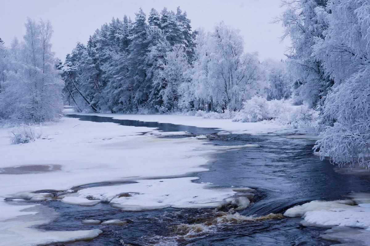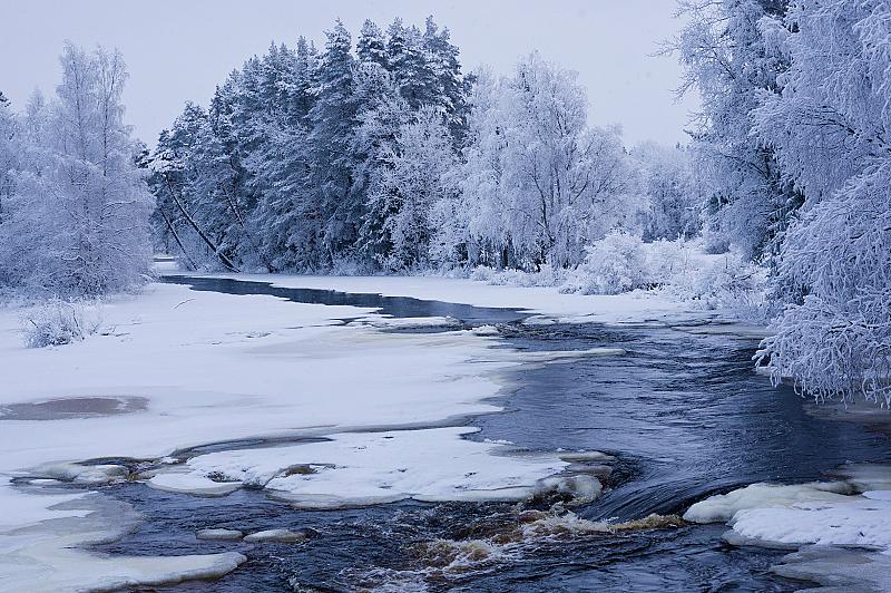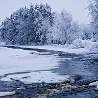 -20C en een absoluut wonderwinterlandschap bij Koitelinkoski in Finland. Sneeuw die zacht als dons nog met zichtbare kristallen, de bomen en grond bedekt. Geen geluid behalve het stromen van de rivier en verder helemaal niets. Het was dat mijn vingers bijna niet meer bewogen maar anders had ik er nog gestaan!