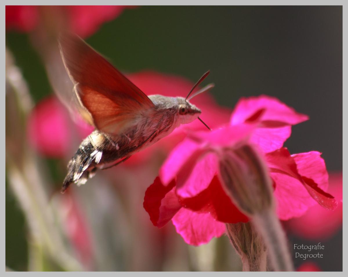 Ook deze kolibrievlinder vertoefde deze middag in mijn achtertuin.