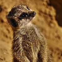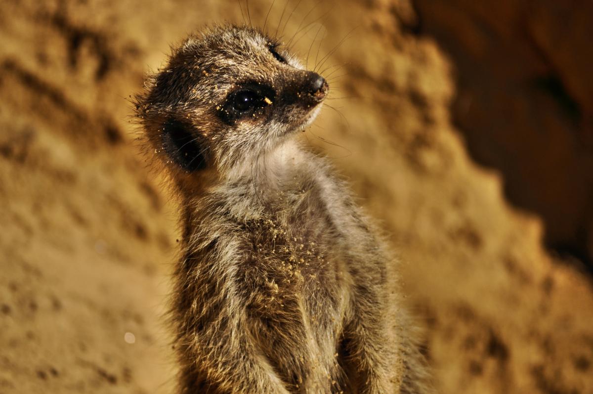 Kleine Kolo uit de film "The meerkats", of gewoon een lief stokstaartje in dierentuin Emmen.
