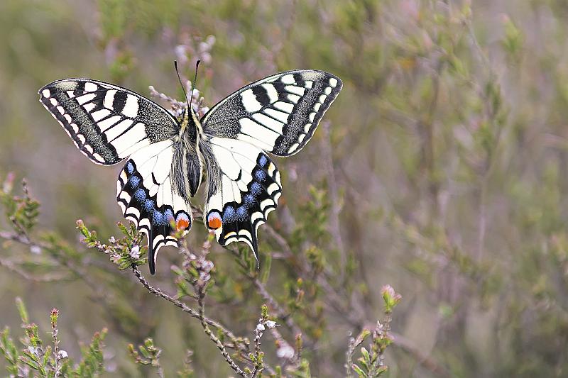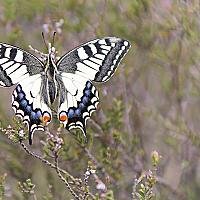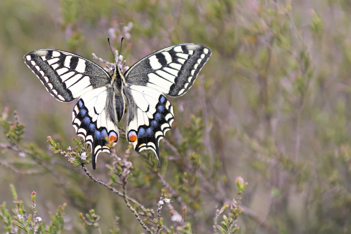 Een niet-zo-alledaagse vlinder op de nog dorre heide.