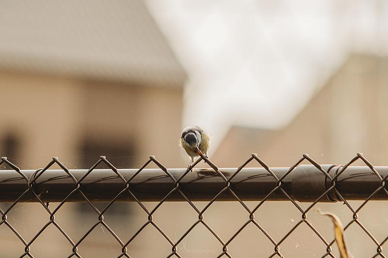 Koolmees eraan het smullen van een zonnebloem pitje.