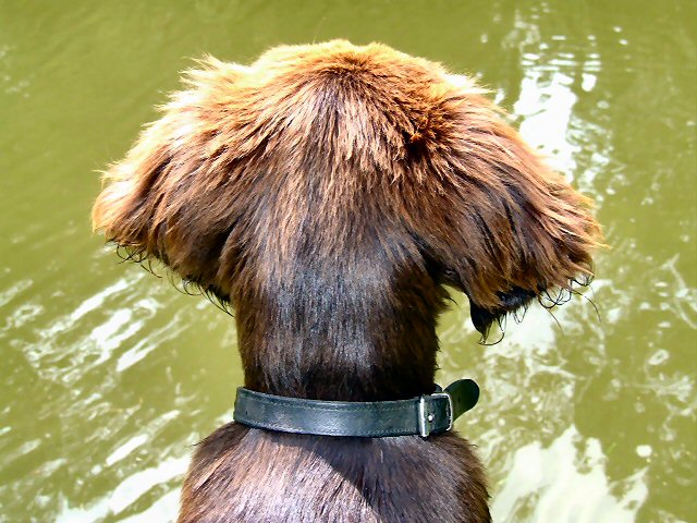 Mijn hond zat vlak voor me naar een paar watervogels te kijken.Heb ook hier alleen de belichting naderhand bijgesteld.