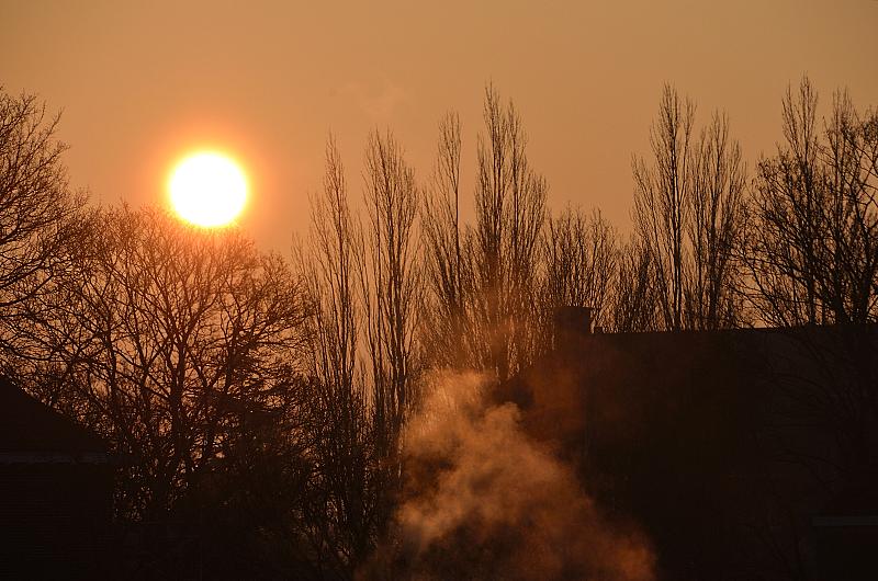 Een zonnige, maar koude morgen. De kachels worden nog even flink opgestookt.