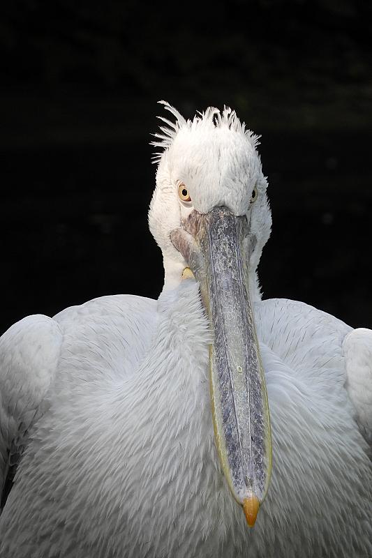 Het is een grote zwemvogel met relatief korte, stevige, grijze poten en een lange slanke nek. Het verendek is voornamelijk wit. De uiteinden van de vleugels zijn grijs. Achterop de kop staan de veertjes omhoog, vandaar de naam 'Kroeskoppelikaan'.