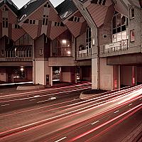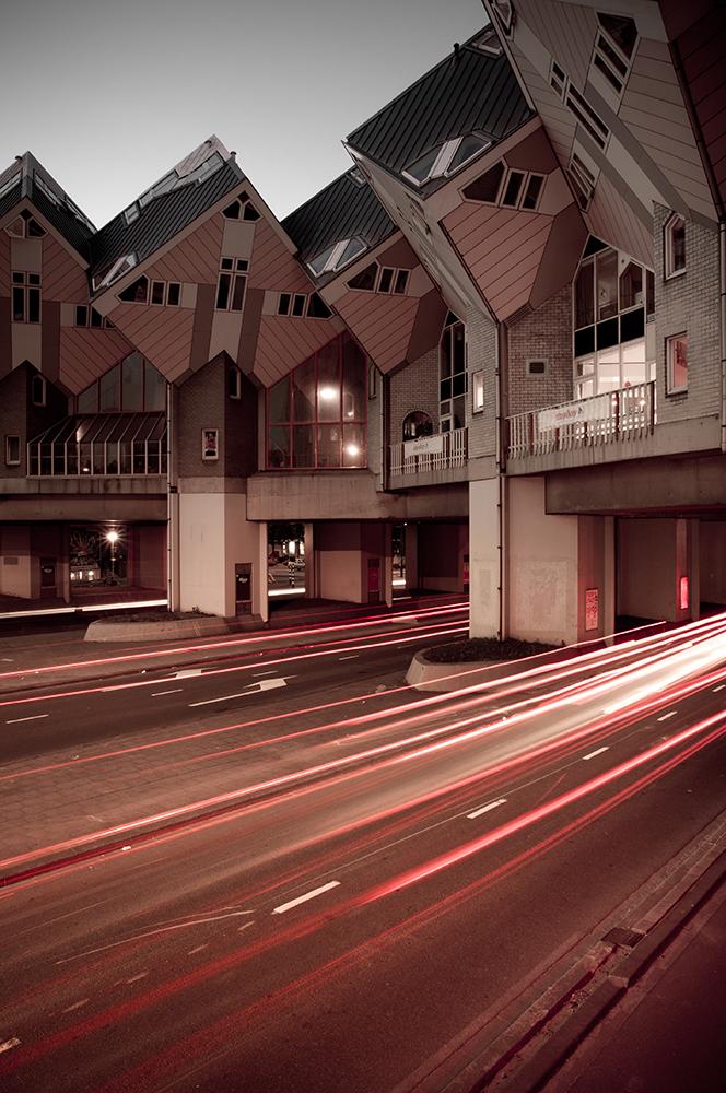 Kubuswoningen bij nacht