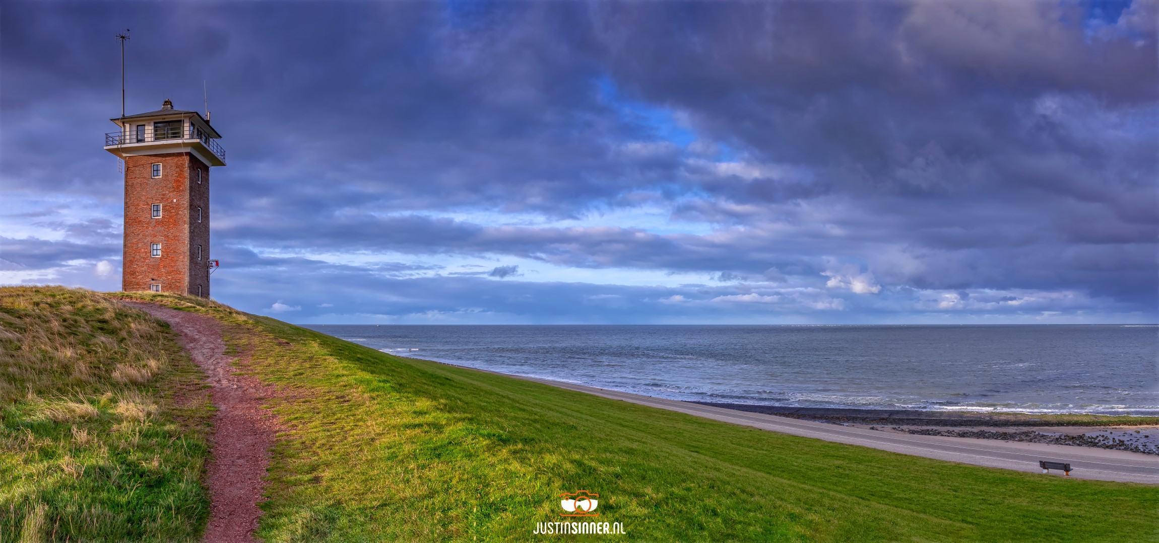 Kustwachttoren op de dijk bij Huisduinen / Den Helder. De Kustwachttoren van Huisduinen is een vierkante 18 meter hoge bakstenen toren op de zeedijk in Huisduinen in de Nederlands provincie Noord-Holland. Het werd gebouwd tussen 1948 en 1949 en verving een ijzeren uitkijktoren voor de kustwacht. #DenHelder #Texel #justinsinner #fotograaf #canonnederland
