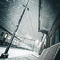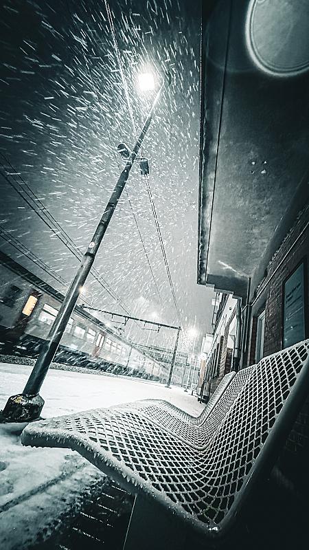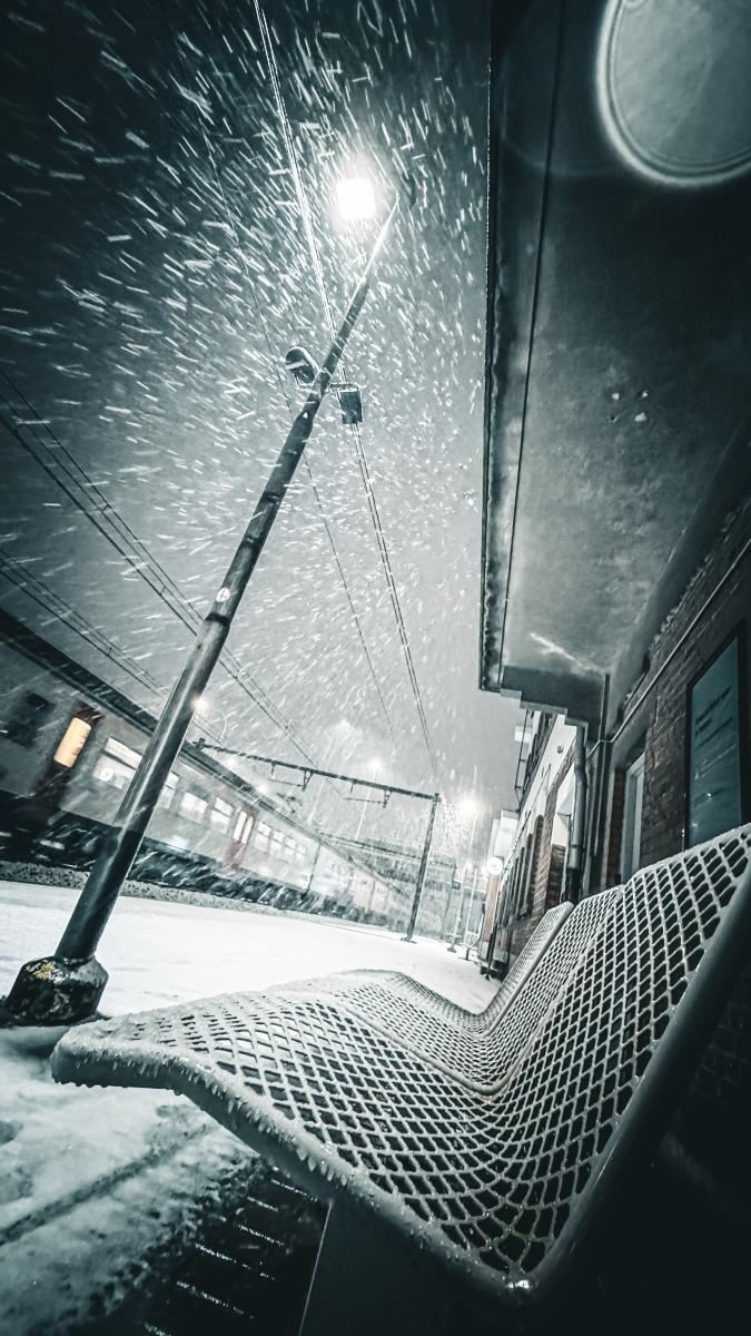 Het station van izegem tijdens de eerste sneeuwbui van het jaar.