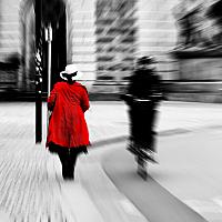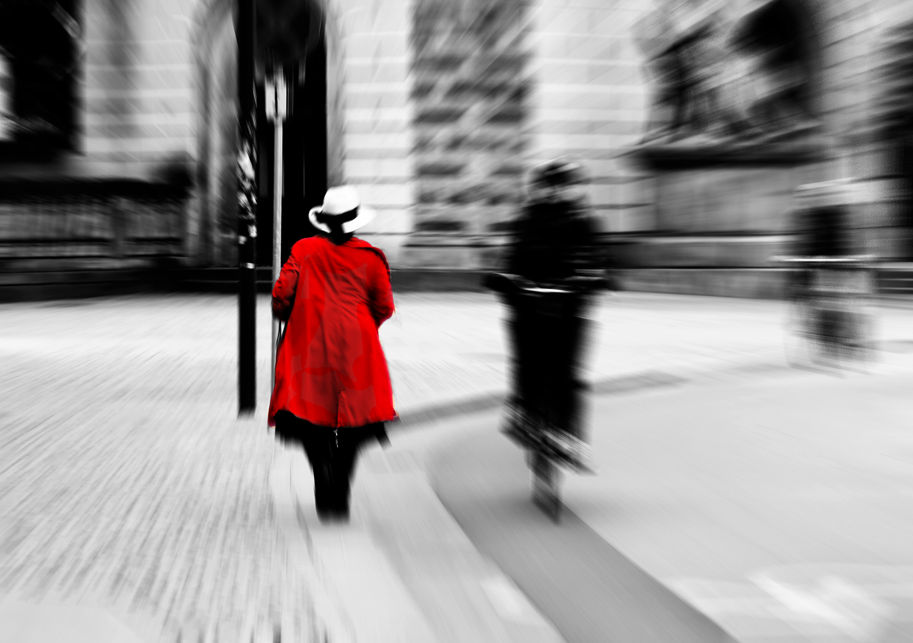 Deze vrouw spotte ik in Kopenhagen, terwijl een fietser haar passeert.