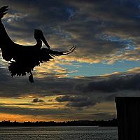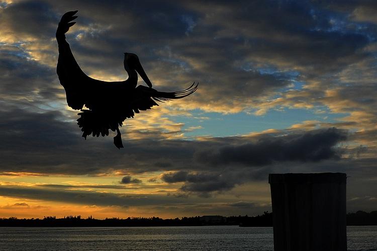 landende pelikaan.