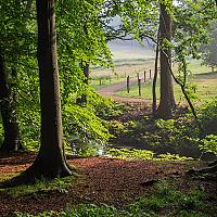 Een landschap achter de bomen in het bos in Oosterbeek (NL)