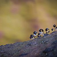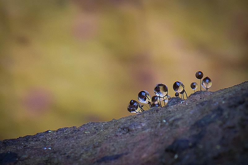 Zo groot als een speldenknop op een rotte boomstam gewoon bij mij in de tuin .