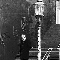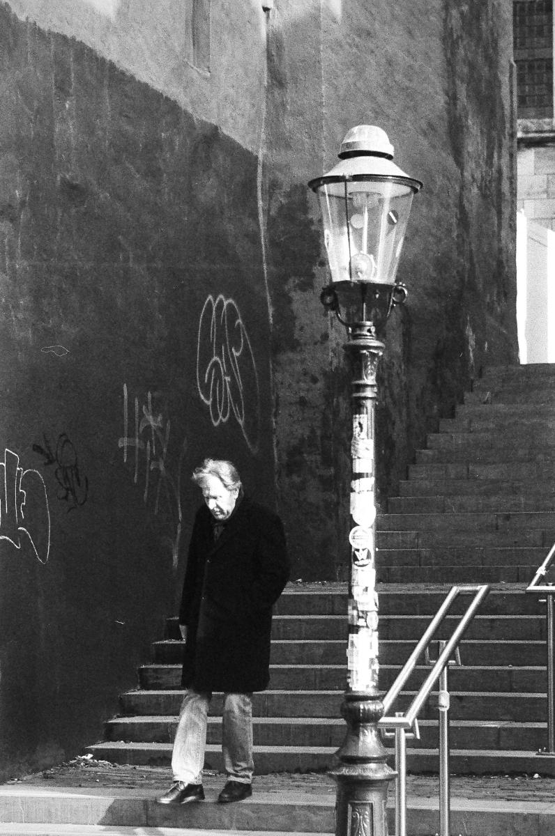 Ik heb een oude Leica m2 gekregen. Had jaren stil gelegen en geen idee in welke staat de camera was. Dus een rolletje gekocht en gewoon gaan proberen. Ik was haast vergeten hoe leuk ouderwets analoog fotograferen was. En de camera blijkt nog prima te werken! Deze foto is gemaakt in nijmegen. Ik vond de lichtval en het contrast met de donkere muur zo mooi. Later zag ik dat dit wel eens Frank Boeijen zou kunnen zijn. Lekker boeien, ik vind het gewoon een mooi straat beeld.