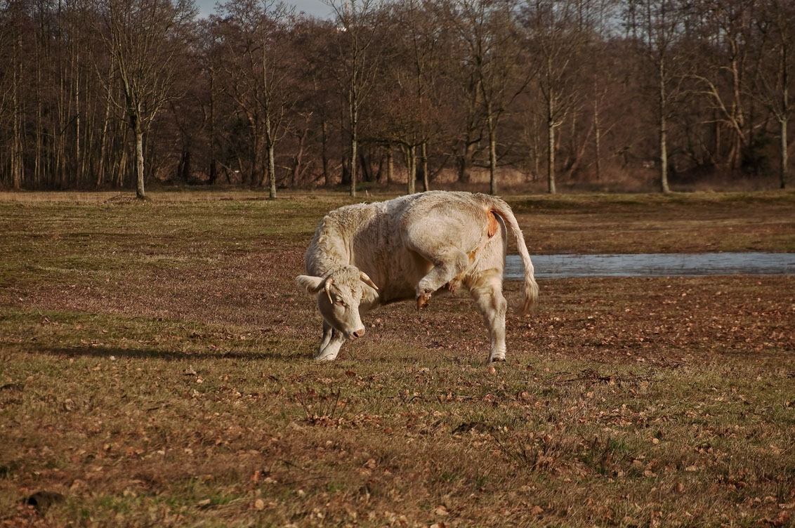 Lekker wandelen vandaag en genieten van het zonnige weer, de mooie omgeving en deze lenige Charleroi koe.
