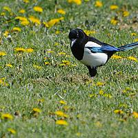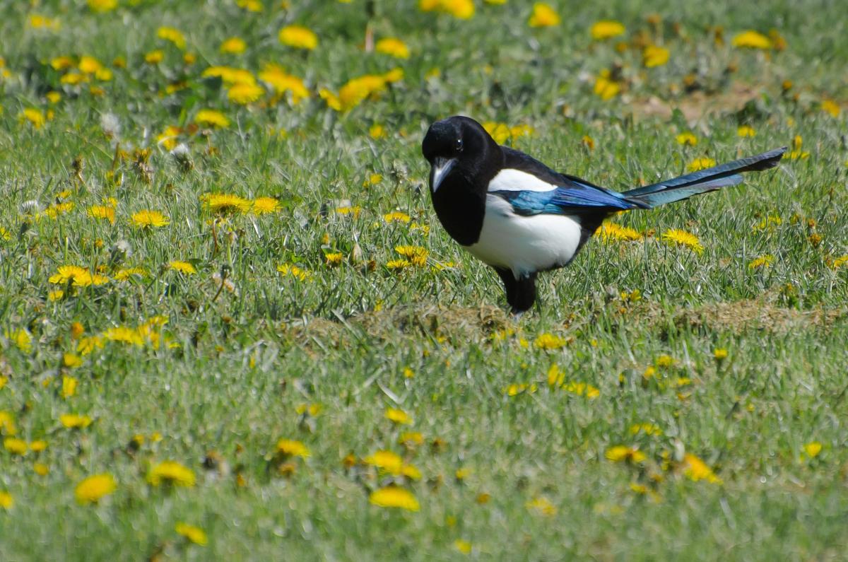 Tijden het fietsen zag ik deze ekster foerageren in het gras , meesta zijn ze al weg voordat je de camera in de aanslag hebt maar nu lukte het