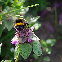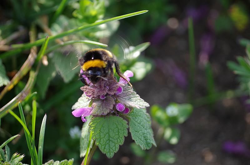 Lente begin als makro opname van een hommel