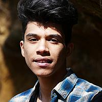 Een jongen, in de lente van zijn leven, genomen in de lentezon, tegen de bruine kleur van bruine rotsen in ijzerzandsteen.