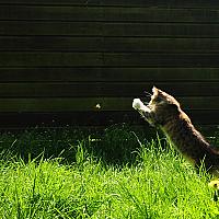 Fotograferen is wat ik graag doe, maar tot anderhalf jaar terug veelal alleen op de gebruikelijke momenten (vakanties, verjaardagen) met mijn kleine zakcamera. Steeds vaker deden zich situaties of momenten voor waarop ik dacht: "hé dat zou een mooie foto zijn geweest". En de liefde voor fotografie werd een feit. Ongeveer anderhalf jaar geleden heb ik een digitale spiegelreflex camera gekocht en ben ik gaan oefenen...oefenen en oefenen door te doen en met behulp van fotografietijdschriften. Gelijk op de M-stand om het meeste uit mijn camera te halen. Nu volg ik een cursus om meer te leren over o.a. belichting en compositie. Regelmatig is mijn kat onderwerp van oefening. Zij zijn inmiddels helemaal gewend aan die grote camera voor hun neus. Mooiste fotografiemoment is voor mij de laaghangende zon aan het einde van de middag, vanwege het fantastische licht! Mijn katten zijn dan ook op hun vrolijkst en heerlijk ontspannen.