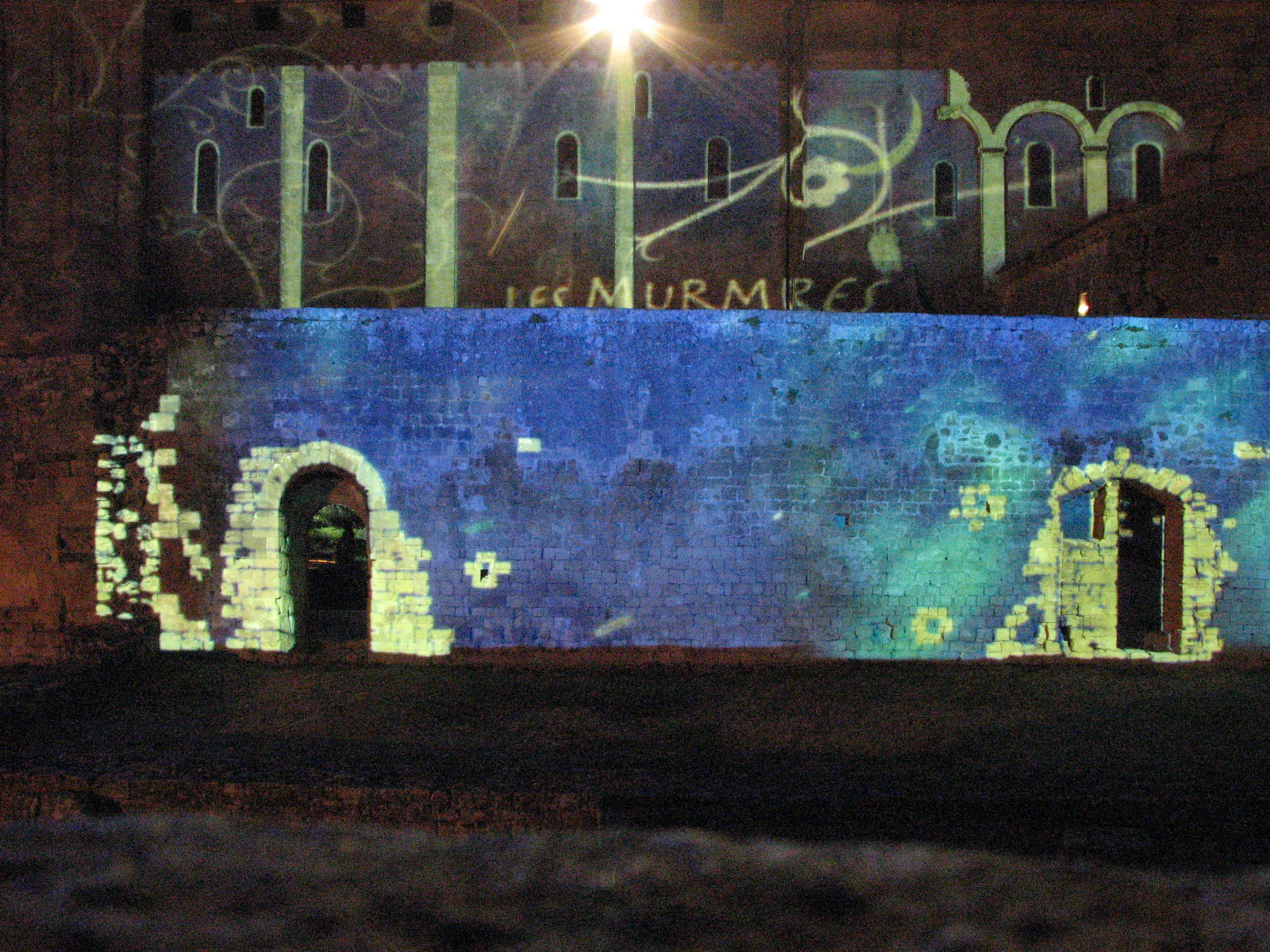Nachtelijke projectie van beeld (met geluid) om de muren van de abdij.