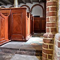 Kerkbanken van de kerk in Garmerwolde. De kerk stamt uit het eind van de 13de eeuw en bevat veel oude schilderingen en prachtige stenen.