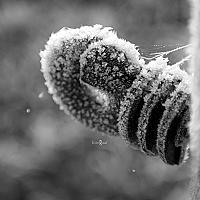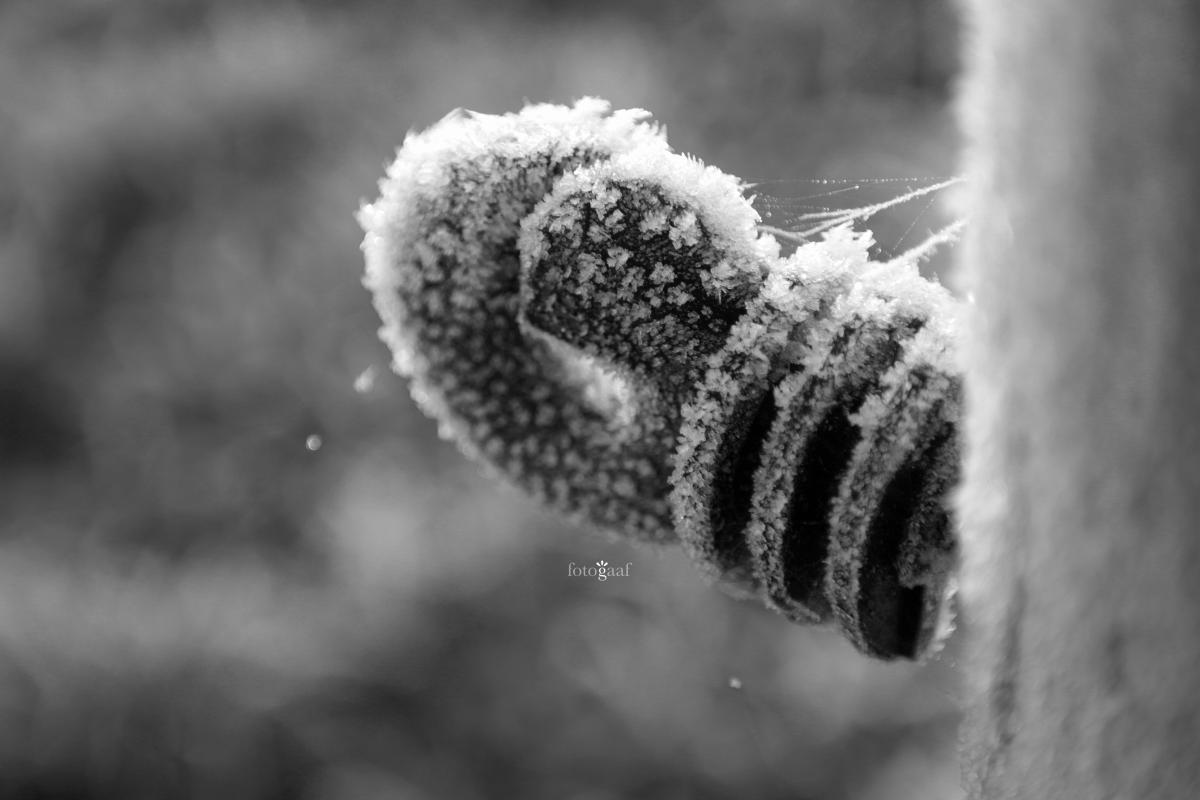 Een detail middenin het weiland afgezet met rijp.