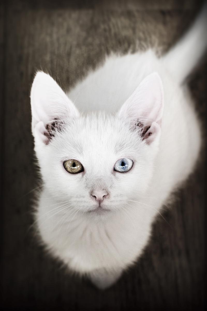 Levi is een dromer maar ook nieuwsgierig. De kracht van de foto ligt in de focus van zijn kop en zijn twee gekleurde ogen. Blauw en groen. Wanneer ik de foto laat zien aan mensen is het eerste wat ze zeggen: Heb je de ogen bewerkt in fotoshop? Nee, hij heeft echt een blauw en een groen oog. Zijn kop is scherp en de rest onscherp. In de foto zit ook een diagonale lijn verwerkt dat wordt gevormd door zijn staart die uit het beeld verdwijnt. Om de kleur zo te krijgen heb ik de kleur verzadigd.