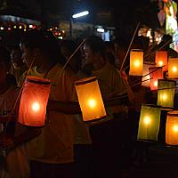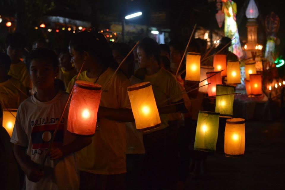 Hier zie je een lichtjes optocht in Laos!