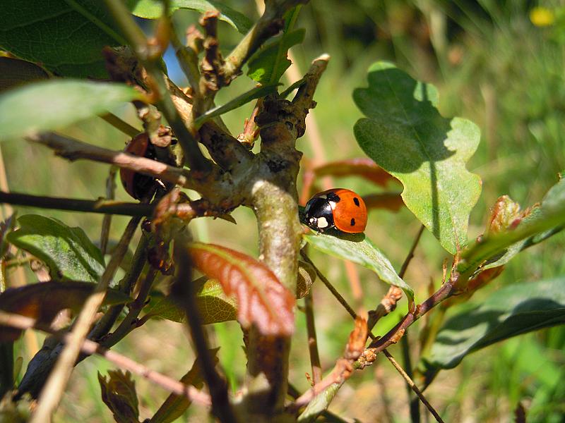 Na een vermoeiende tocht in de duinen, wil je wel even uitrusten in het gras. Wanneer je vriendin zegt dat er 2 lieveheerstbeestjes naast je zitten pak je natuurlijk meteen je fotocamera.