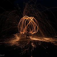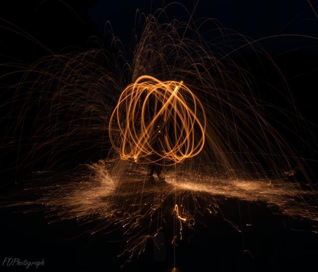 Foto werd genomen vanop statief met lange sluitertijd. Ik heb gebruik gemaakt van staalwol die in brand werd gestoken in een garde. Deze heb ik rondgedraaid. Er werd gebruik gemaakt van een afstandsbediening.