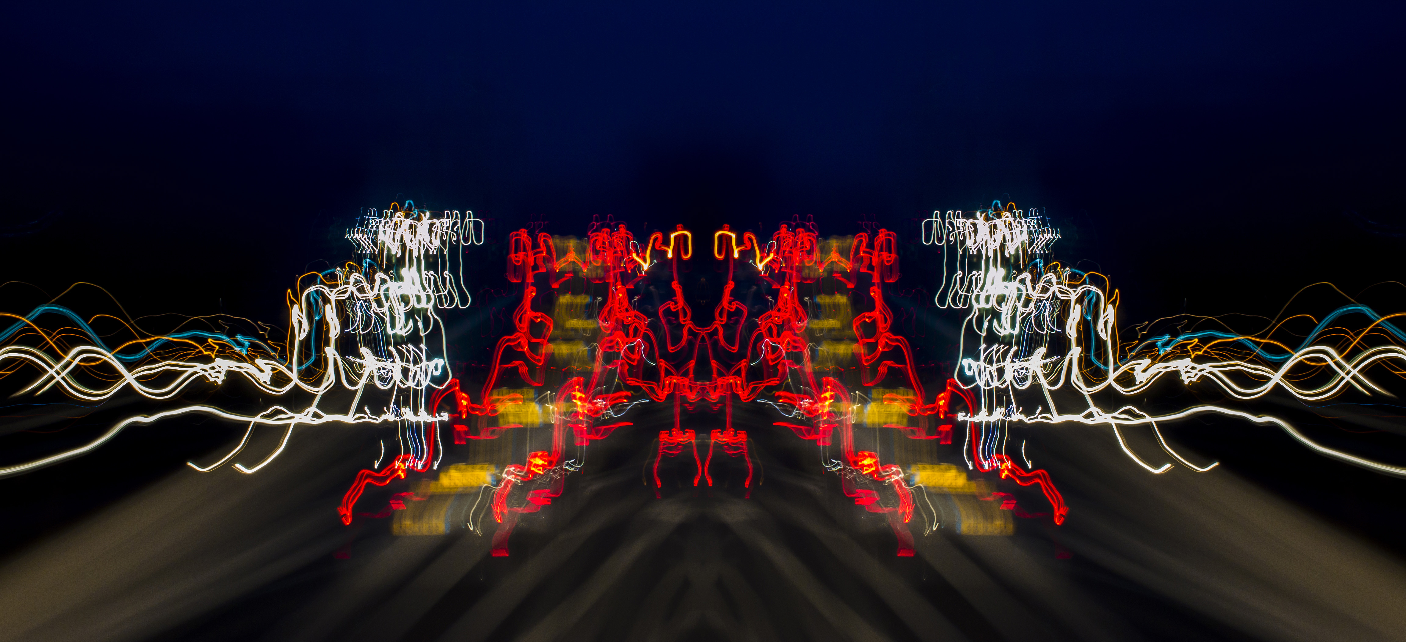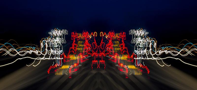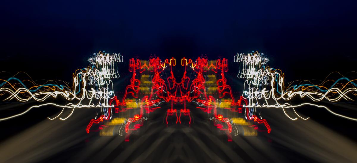 Foto genomen uit een rijdende wagen, in photoshop gedupliceerd en gespiegeld (Laag op Lighten ingesteld)