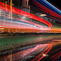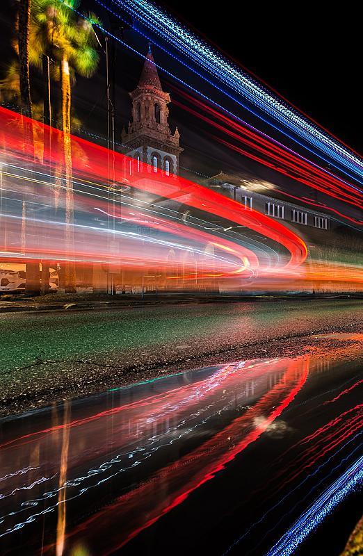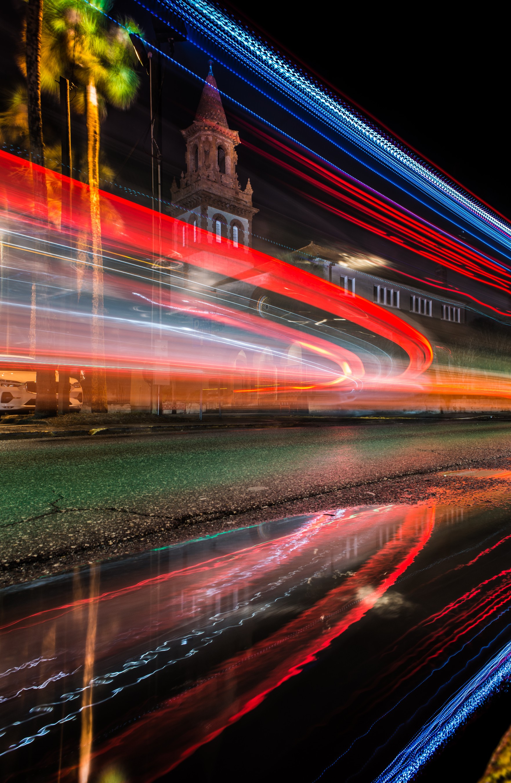 Lange sluitertijd met 24mm op de achtergrond een kerk