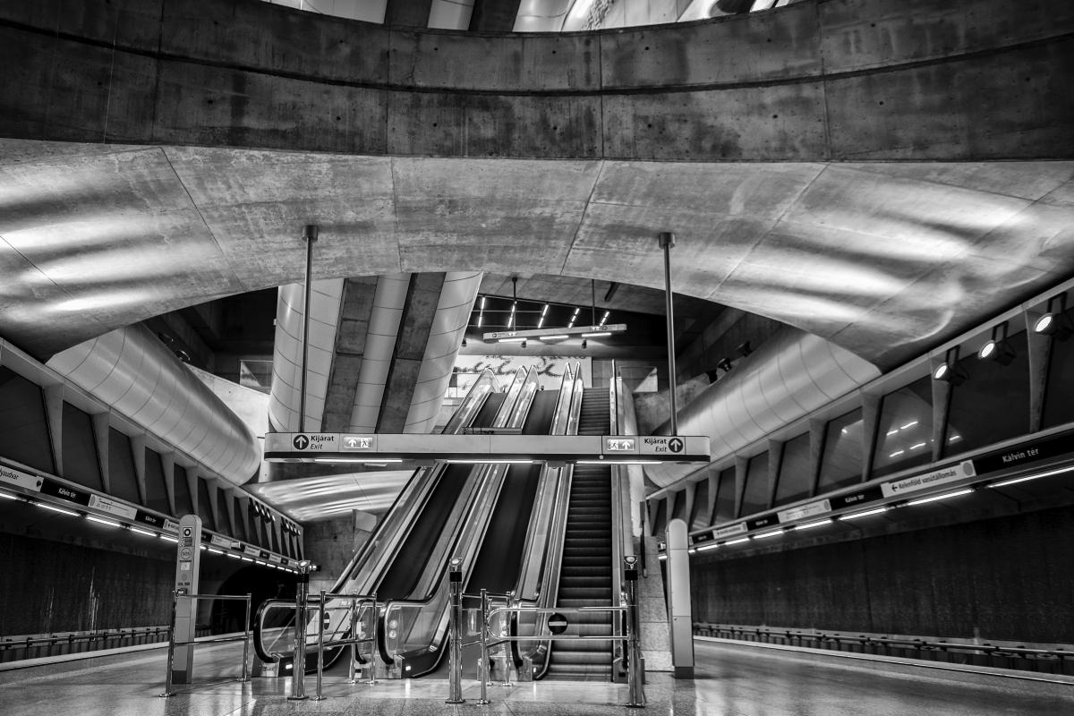 De nieuwe architectuur in de metrolint M4 Kelvin Ter in Boedapest. Boven de grond is alles oud en onder de grond is vernieuwing gaande. Mooi contrast en zeer verrassend