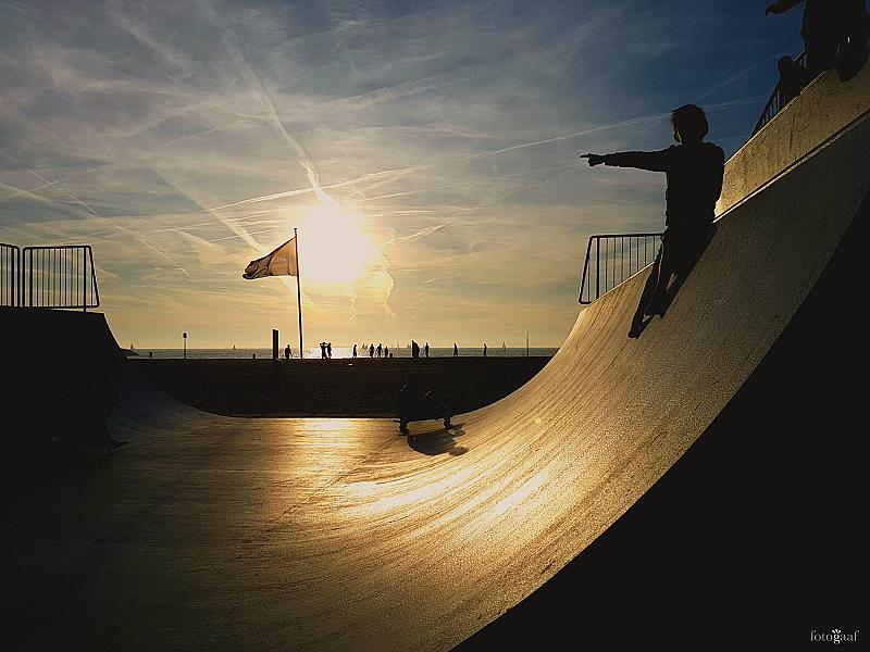 Een heerlijke avond op het strand bij Scheveningen, mijn zoon vermaakt zich prima op de skatebaan.