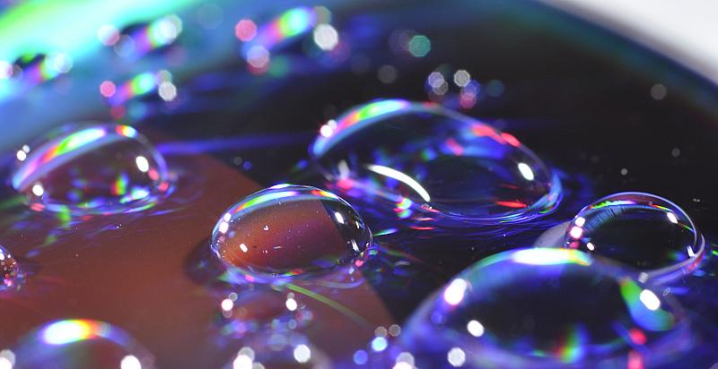 Waterdruppels op een DVD. 2 flitsers @ 45 graden, D90, 105mm Sigma macro