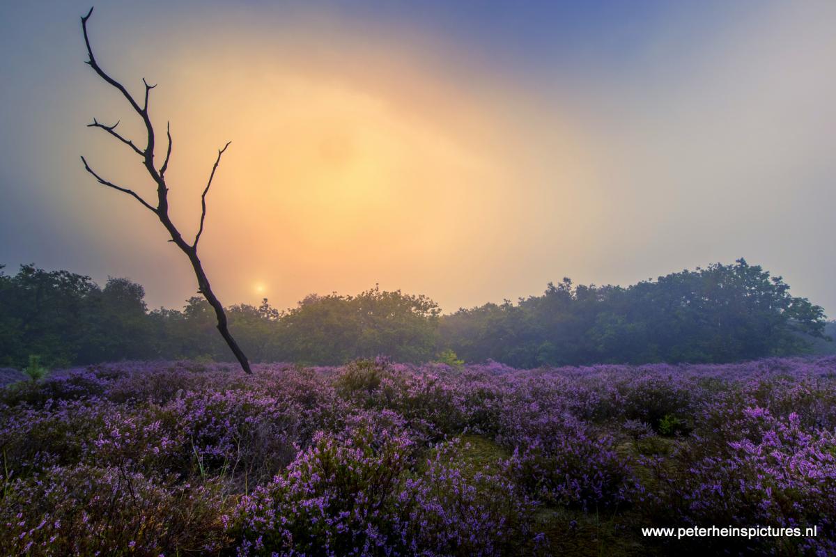 Zonsopkomst in de Schoorlse duinen tijdens een wel heel erge mistige ochtend. Maar heel effies kwam de zon een beetje door, gelukkig stond ik net op de goede plek en de camera schiet klaar.