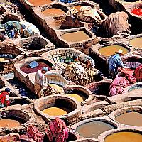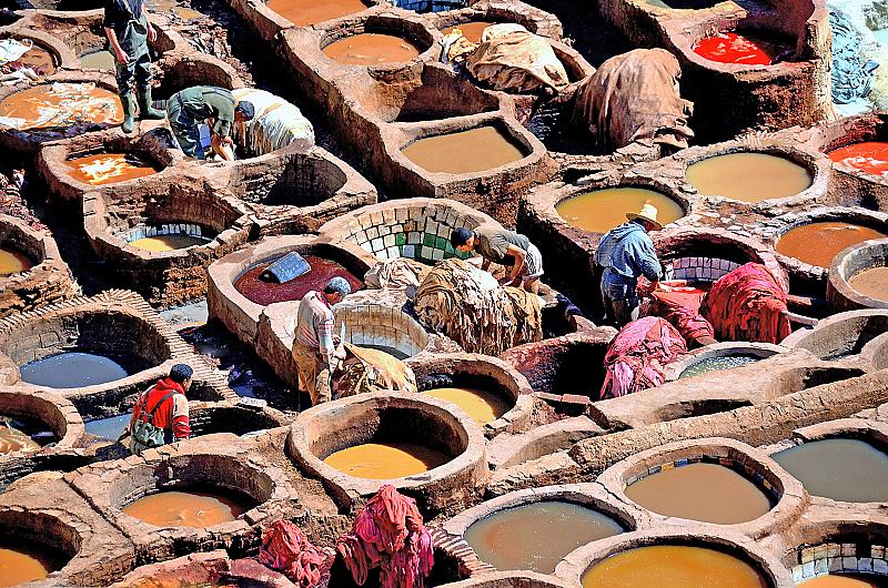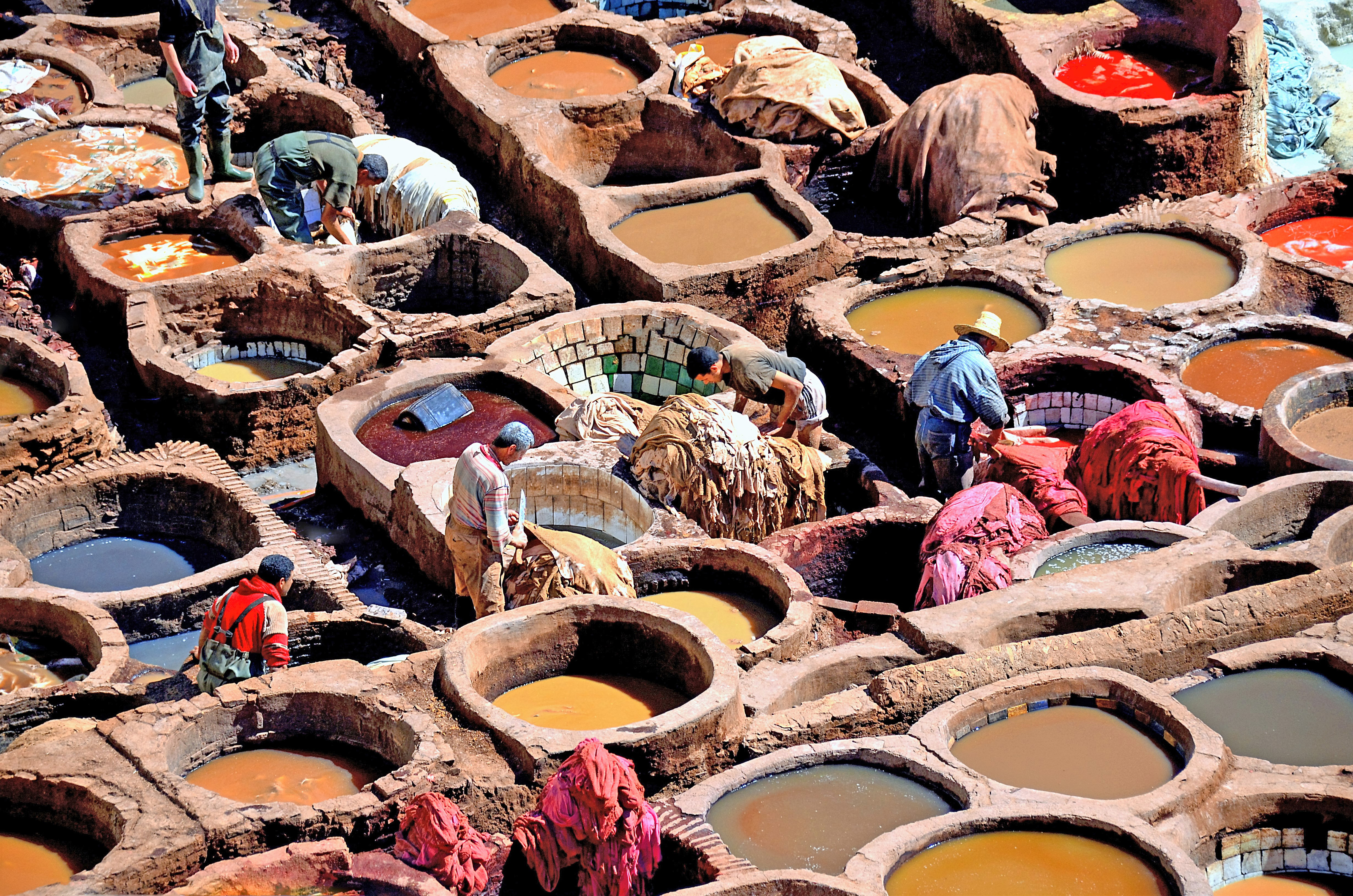Leerlooiers aan het werk in Fez in Marokko