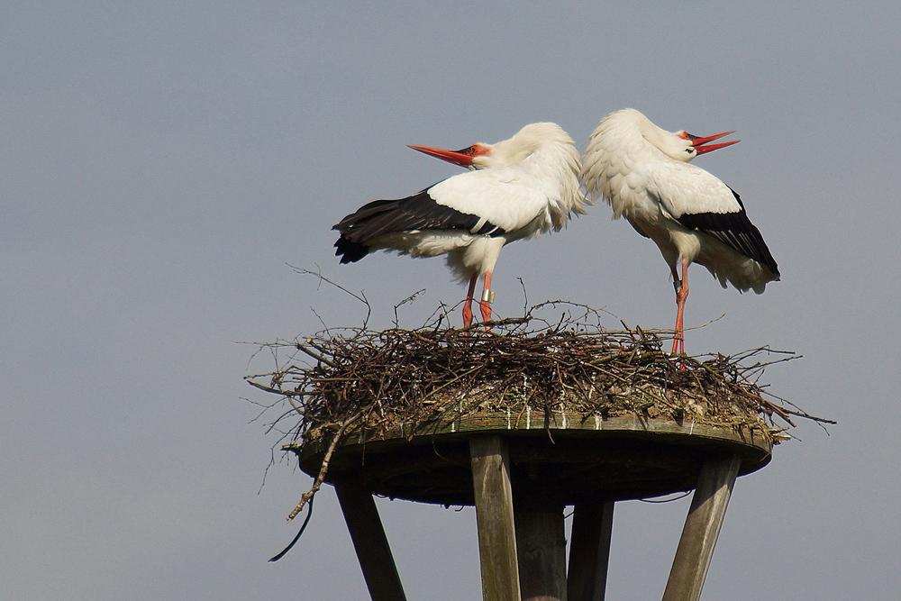 De Lente zit overduidelijk in de lucht, deze twee Ooievaars zijn zeker "in love"!