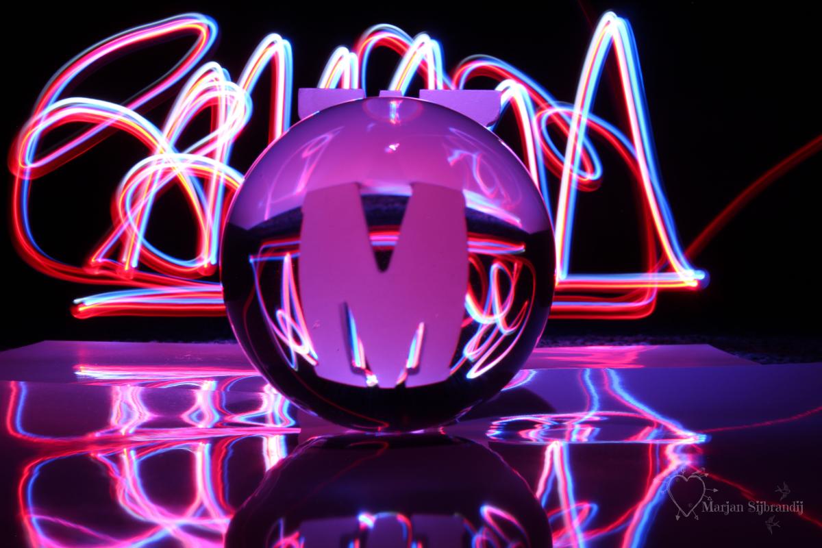 Super leuk om te spelen met het licht en de bol met mijn eigen M letter.